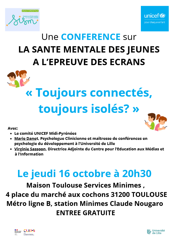 Conférence organisée par l'UNICEF aux Minimes à Toulouse ce jeudi 16 octobre à 20:30