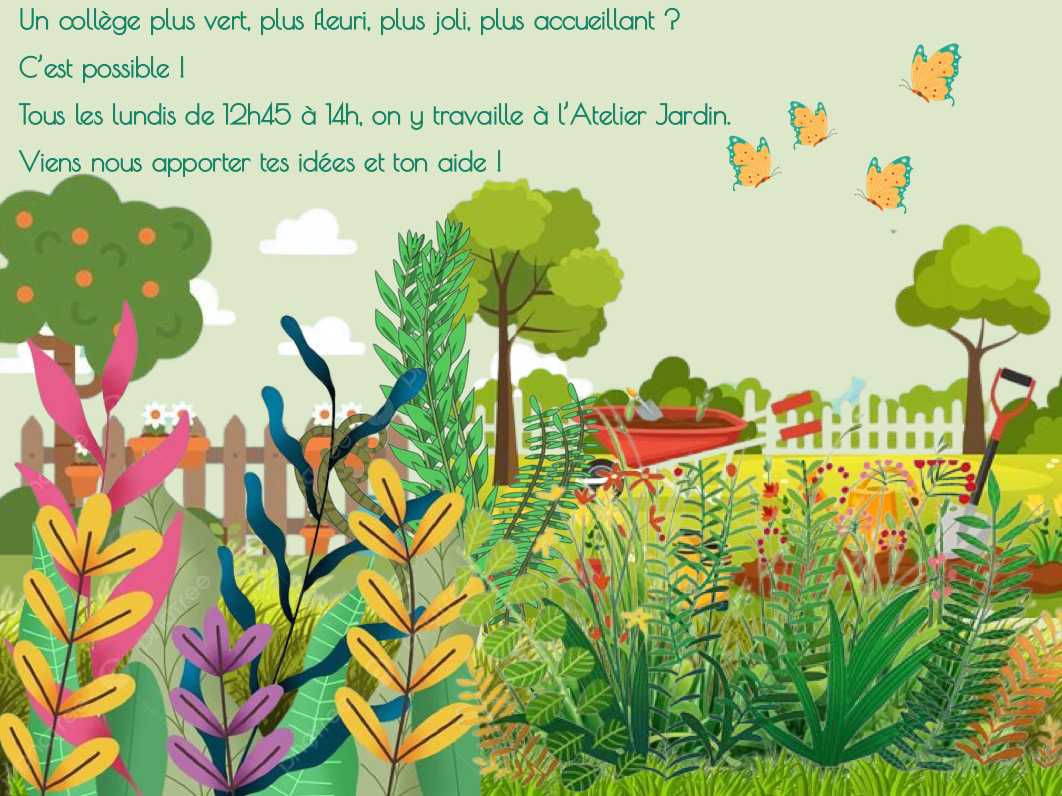 L’atelier jardin, c’est tous les lundis de 12h45 à 14h - RDV dans le hall du collège: